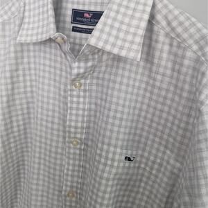 Men's Vineyard Vines Classic Fit Tucker Shirt White Grey Medium Long Sleeve
