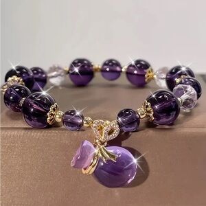 โจ Embrace positivity and abundance with our Natural Amethyst Fortune Bracelet! โจ This beautiful bracelet showcases stunning amethyst beads, renowned for their calming and protective properties, along with a charming Fortune Bag Pendant. Itโs the perfect accessory for attracting good luck and positive energy.