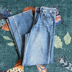Stylish flare jeans by MOTHER. Deep blue hue. Perfect for casual outings.
