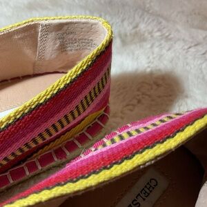 Chelsea & Violet espadrilles, fun multi color. Cushioned foot bed. In great condition.