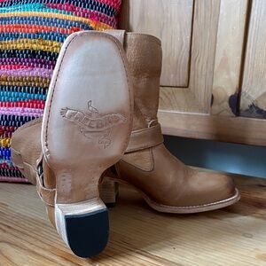 Freebird Darcy tan leather boots with a 2.5 in heel.