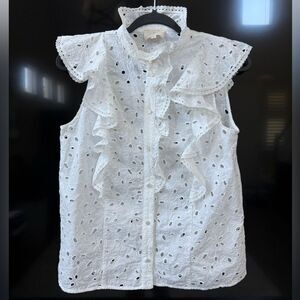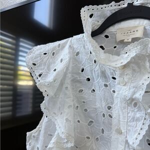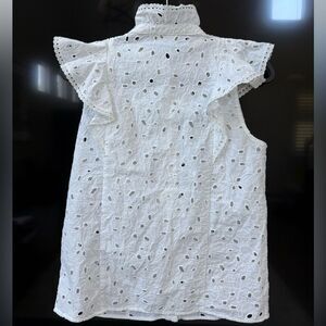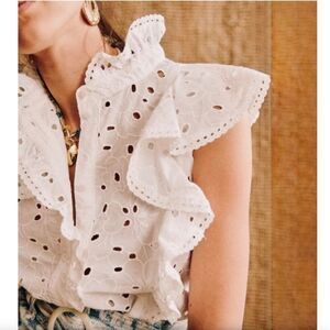 Sezane White Chiara Eyelet Ruffled Cotton Blouse, Size 38