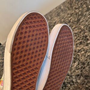 I don’t believe my daughter actually ever wore these. They are so like new without tags No strings or box Stylish Vans sneakers with floral canvas and black accents. Perfect for casual wear.