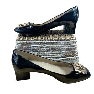 Ellen Tracy Bastion Black 2" Block Heel with Animal Print Accent, Size 7 1/2