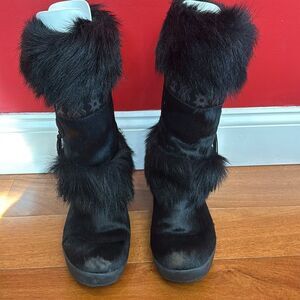 Tecnica Skandia Women's Black Fur Ski Boots Made in Italy size 10 The boots shows some wear around the toes area but other then that its in great conditions.