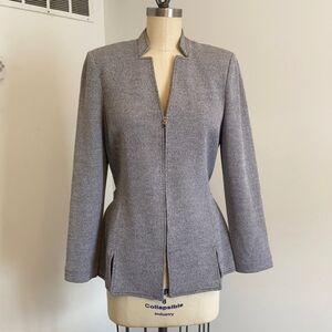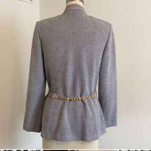 Gorgeous EUC St. John Collection Gray Jersey Chain Belt Waist Zip Jacket