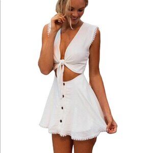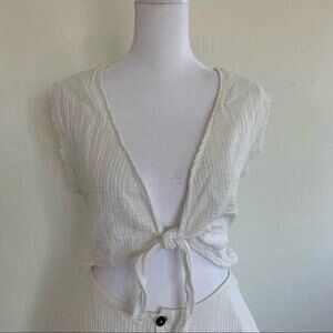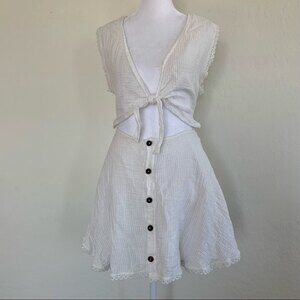 Peixoto Sofi White Coconut Stripe 100% Cotton Front Knot Mini Dress Size Medium