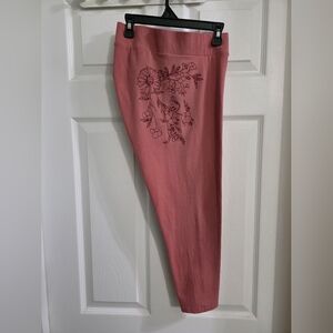 Material is stretchy and comfortable, size 2X. New with tags. Comes from a pet friendly, smoke free home.