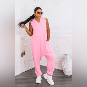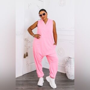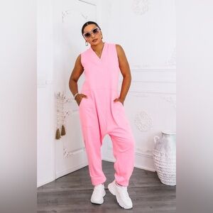 Elevate your style with this chic pink sleeveless jumpsuit. Perfect for any occasion, it offers comfort and elegance in one.