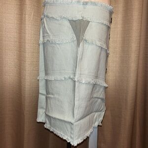 Boutique Very J Denim Green Mint Sage Fringe Mini Button Everyday Party Festival Beach Coastal Resort Vacation California Colorblock