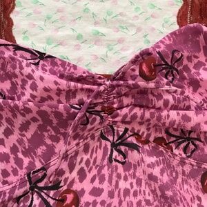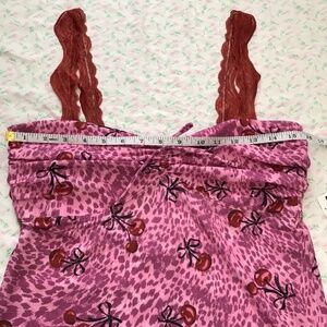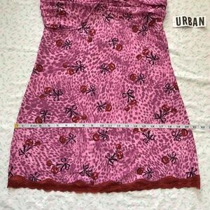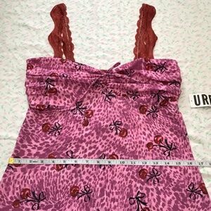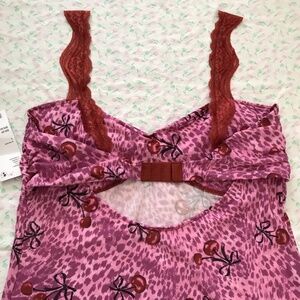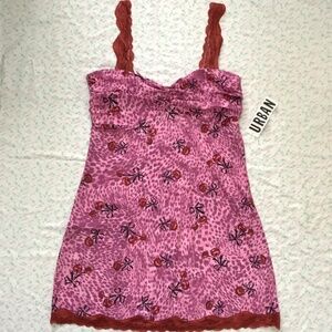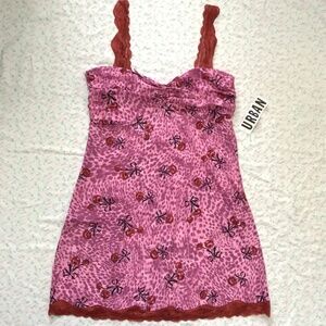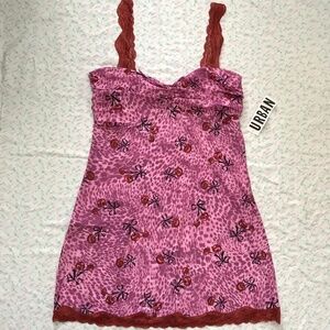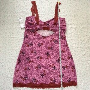 NWT Out From Under Mon Amor Lace Strap Mesh Slip Dress L Blush Pink Red Cherry