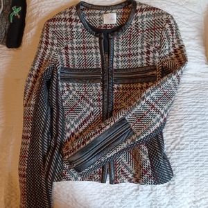 Parker NY Wool Blend Blazer Jacket with Leather Trim Size Small