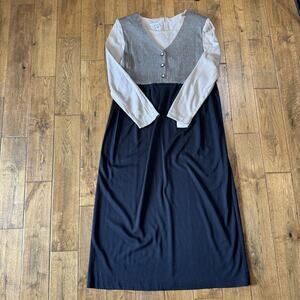 K.C. Spencer Dress Womens 16 Black Beige Long Sleeve Button Detail Maxi Made USA