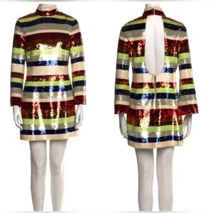 Alice + Olivia Mailynn Sequin Striped Multicolored Mini Dress SIZE 12 NWT $985