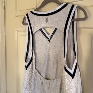 Just as effortless as it is essential, this wear-anywhere onesie is featured in a slouchy, relaxed fit with V-neckline, cutout at back, lace detailing, and striping at sides for an added sporty touch.