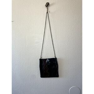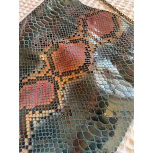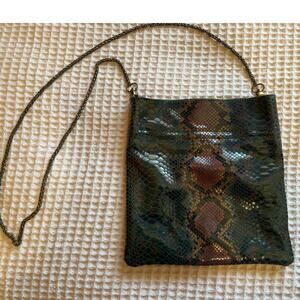 Free People Leather Cross Body Green & Brown Sneak Print Magnetic Closure Purse