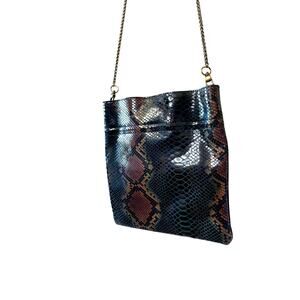 Features: Magnetic Closure, Genuine Leather, Sneak Skin Print/texture, Chain Strap that is removable.