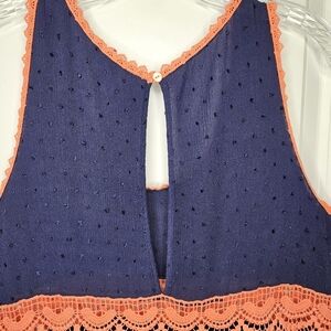 Umgee Dress Womens Navy Blue Coral Sheer Swiss Dot Crochet Waist Size Medium
