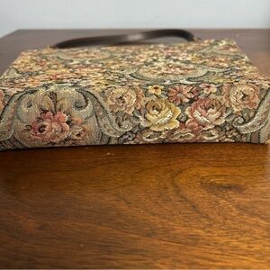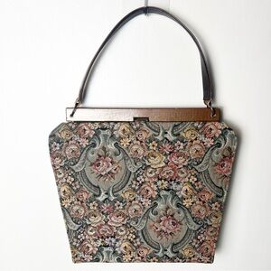 Vintage 50s Floral Tapestry Top Handle Kelly Frame Handbag Victorian Roses