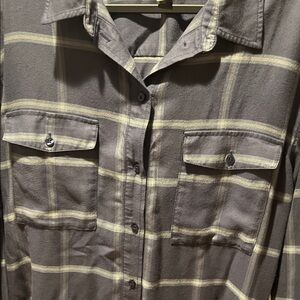 Casual navy shirt with checkered pattern. Features button-down front and chest pockets. Ideal for everyday wear. Gently worn excellent condition!