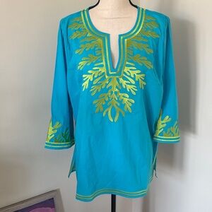 Blue and White NWOT Positano Printed Blouse 3/4 Sleeves Size XL