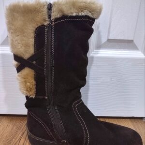 St. John's Bay Leather Fur Lined Suede Boots in Brown Size 8