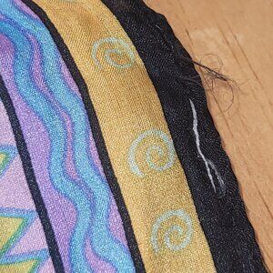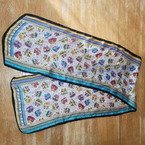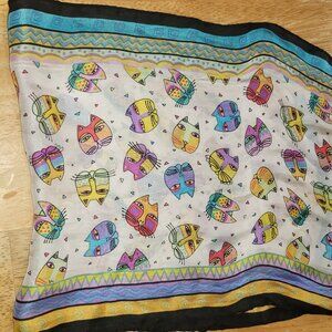 Vintage Laurel Burch Silk Scarf Wrap 10x50" Colorful Blue Purple Yellow Cats
