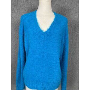 Bright Blue Fluffy I.N.C. Eyelash V-Neck Glam Soft Sweater Size Small NWT's