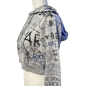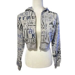 MOSCHINO COUTURE Gray Cropped New w Tags Zip Hoodie ICONIC !! Sz Small Sweatshi