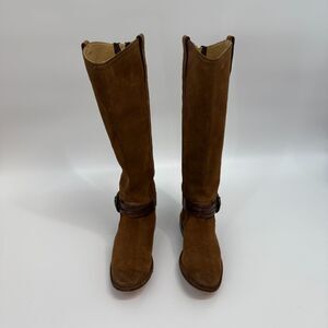 Frye Shirley Multi Strap Tall Harness Boot Brown Suede Leather Western Size 5.5