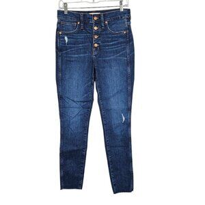 MADEWELL High Rise Jeans MEDIUM WASH BLUE size 27 Button Fly Skinny Distressed