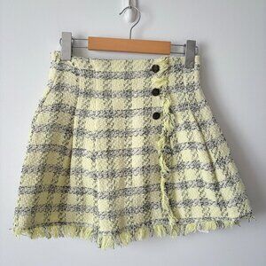 Zara SET Textured Tweed Plaid Crop Top + Skirt Yellow Black Size XS