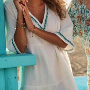 White Cotton Gauze Embroidered Dress by Esqualo New Sz 6