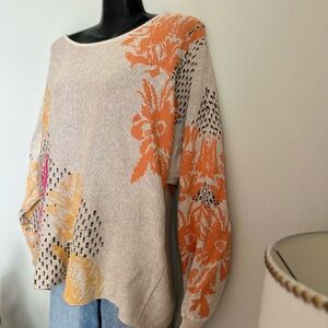 Floral Patterned Sweater - Beige, Pink, Orange