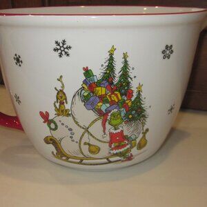 NWT and in box, Grinch Ceramic Mixing Bowl, 2 quart capacity, with red detailing on edge, weight is 3lbs
