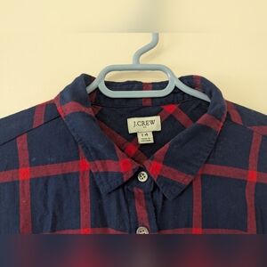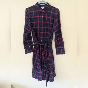 J Crew Women's 14 Blue Red Check / Plaid Button Shirt Dress Waist Cinch Collar