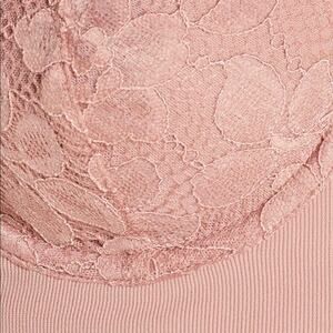 NWT balconnet bra from Free People in rose color. Delicate, lace cups top a supported balconnet bra via shape-bolstering underwire and a wide, ribbed band. Adjustable straps. Pull-on style. Color: Rose Condition: NWT