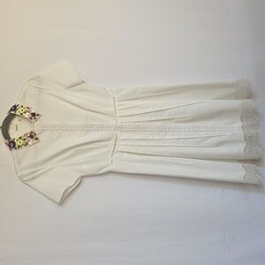 Pre-owned, excellent condition. Blazer 62% Cotton 34% Polyester 4% Viscose Lining 95% Polyester 5% Spandex Sleeves softly gathered to 3/4 length Fringe accents 3 Pockets One button closure Approximate Measurements Armpit to Armpit 18" Sleeve 17" Length 28 1/2" SKU J293