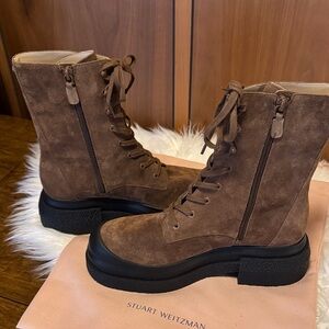 Stuart Weitzman Brown Lace-Up Suede Boots
