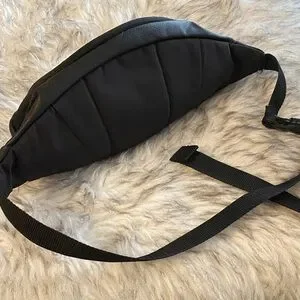 Sleek Adidas belt bag in black leather. Features a front zip pocket. Ideal for on-the-go style.