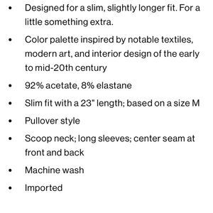 LUXE BALLERINA TOP NWT SIZE MEDIUM 23” LENGTH SLIM FIT LONG SLEEVE SCOOP NECK