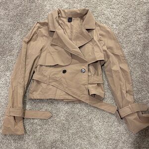 Sleek black leather jacket. Features zippered pockets and cuffs. Stylish and versatile.