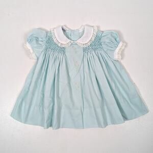 Everyday Heirloom classic navy corduroy dress with a white smocking. So pretty for the holidays! Size 8