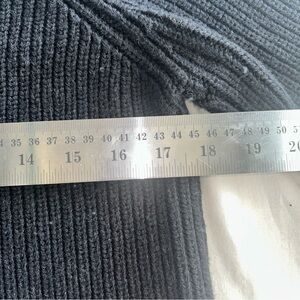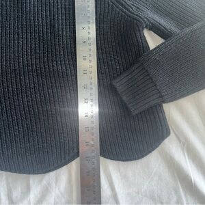Chic black crew neck sweater. Ribbed texture. Long sleeves. Perfect for layering.