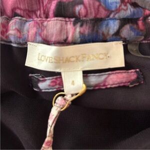 Love Shack Fancy Judah Midnight Light Maxi Dress. LoveShackFancy Size 4 Judah Floral Romantic airy textured chiffon in a floral print with periwinkle edging. Features include a ruffled flounce, can be worn on or off shoulder, tie belt, shirred full skirt, ruffle bell sleeve, fully lined, and hidden side zipper closure. New with tags with no noted flaws. Midi to maxi length depending on your height and how you wear neckline. Shoulder seam to hem measures approx 63" in length.|
