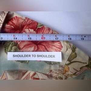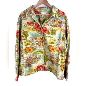 Coldwater Creek Denim Shirt Jacket Button Front Hawaiian Tropical Print L NOTES