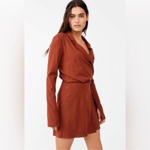 Free People Helena Wrap Dress Coconut Shell Burnt Orange
