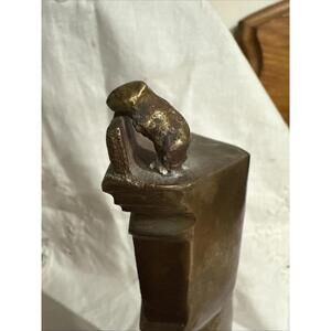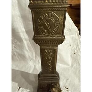 VTG Solid Brass Grandfather Clock Cat Mouse Paperweight Cottage English Country