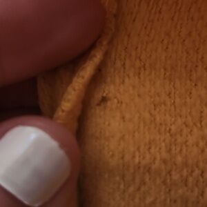 Brand tag was ripped out, small hole where it was ripped, doesnt affect sweatshirt, covered by hood