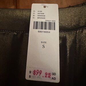 NWT Shine in this elegant metallic skirt featuring a stylish ruffle detail with two front slits. Perfect for any occasion, this skirt adds a touch of glamour to your wardrobe.